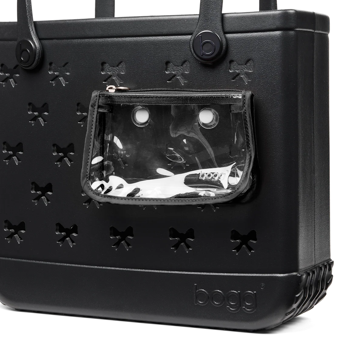 Note: All Bogg bits & accessories that fit in our totes' standard circular holes fit in the Bow cutout holes found on this tote.